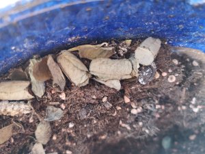 In a flower pot where the flowers had bloomed during the summer, we were regularly visited by a little bee. The bee would crawl in under a leaf at the side of the pot, be gone for a short while and then “buzz off” only to return shortly after. A ground bee, was making a perfectly tubular tunnel in the earth in the flower pot. We noticed, after a while, that it had begun to traipse in with bits of leaves. Renovating perhaps? Some of the pieces were as big if not bigger than the bee itself! And what in the world was it building in there? The month of July and August passed as did the flower in the pot and we thought no more of it. The other day, since I was tired of looking at a lovely flower pot filled with nothing but earth and dried up summer blooms, I bought a lovely white late summer chrysanthemum to brighten things up. As I was loosening the earth in the pot I cast my thoughts back to those lovely warm, no, hot days of summer and remembered our little visiting busy bee. I cleared the earth carefully from the side it kept visiting and I found small packets made of leaves. They looked like little bullets, flat on the one end and rounded at the other and the leaves were tightly rolled around something. I carefully pulled one apart and inside was a precious little larve – the beginnings of a bee! And there were so many little bullets! That little bee had been very, very diligent in its mission. It had certainly done it’s bit to ensure the survival of the species! Curiously enough, a few days before we had seen a documentary about the bee – how important these little fellas are to us humans and what we can do in our own back gardens to help them survive – so I put the little bee-lings that I had unintentionally disturbed, back along the side of our flower pot, covered them with earth and planted my chrysanthemum alongside them. It will be exciting to see them crawl out of the pot when spring heralds its return. I hope they survive the cold. I trust in mother nature, she’s been looking after earth’s creatures for a very long time, so I am sure that there will be a swarm of small pollen spreading bees taking flight from the edge of our flower pot come spring. Hope they just buzz off! 🐝🍯❤️